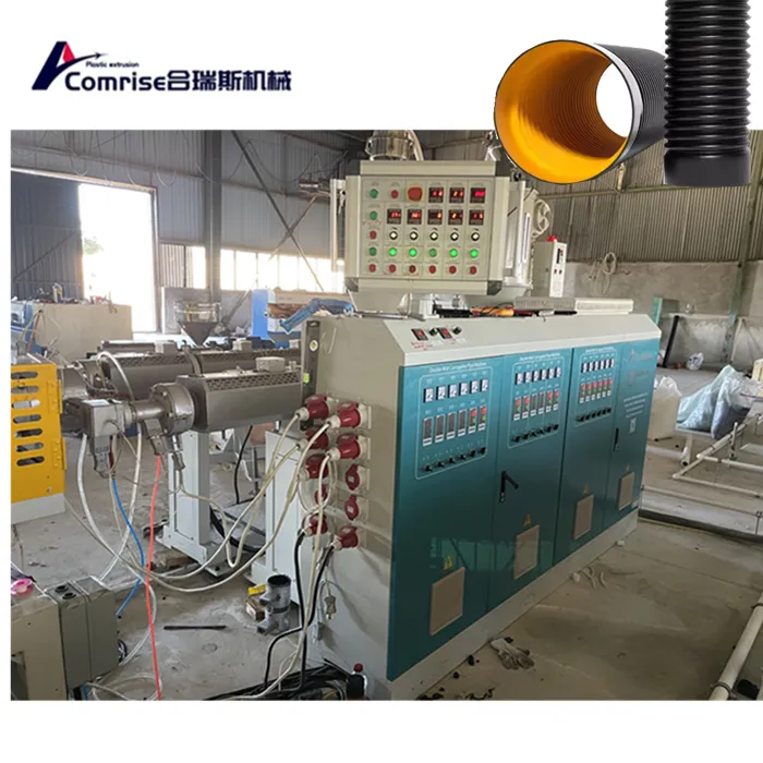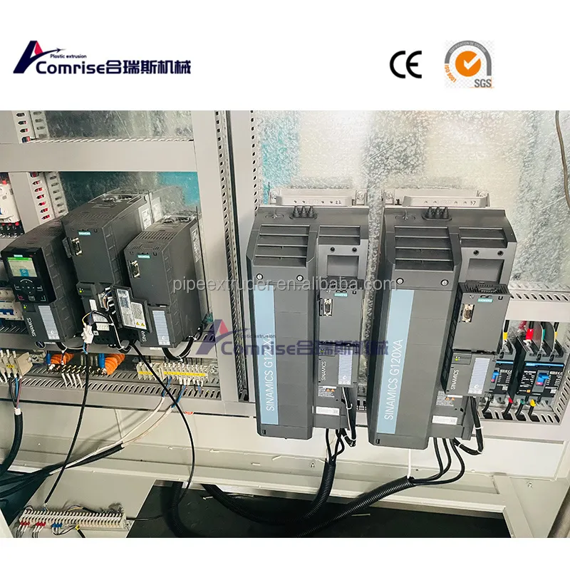 1। एक्सट्रूडर: मुख्य घटक जहां कच्चे माल (आमतौर पर एचडीपीई, पीवीसी, या पीपी) पिघल जाते हैं और एक निरंतर पाइप में गठित होते हैं।