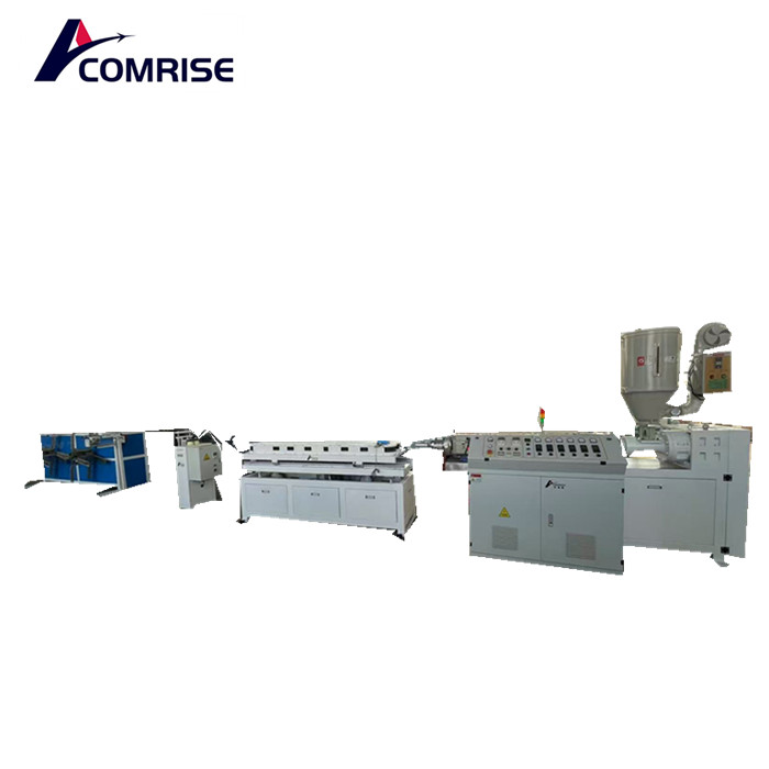 4. Mainly includes: vacuum drying automatic feeder, single screw extruder, die head, core rod and mouth mold, pipe forming machine, and winding machine.